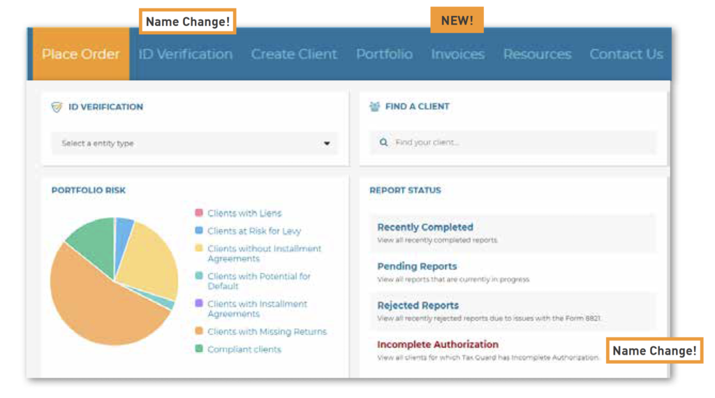 Start by checking out our improved, easy to use dashboard navigation. You’ll notice more robust information and updated billing data under the new Invoices page, located in the top navigation. These enhancements allow you to easily view your entire client list under Manage Clients. Please note that Report Status Attention is now called Incomplete Authorization, and is featured in the Portfolio dropdown. Finally, monitoring clients can now quickly view expiring forms for all active clients in the Portfolio dropdown.